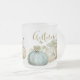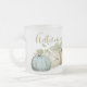 Vackra vattenfärgspumpor i blå nyans, grönt, guld och brun mot vit bakgrund finns på detta frostade mugg. "Hösten" i ord är skriven över mugg överst hela vägen. Vilket vackert säsong-tillägg till din hösthemdekaler! Koordinerar de andra formgivningarna i hösten Blue Pumpkin Collection från Vintage Mamma Cottage Shop.