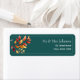 Lägg till en charmig hösttouch till din bröllopsbrevpapper med denna eleganta returadressetikett. Med akvarell höstblad i varma orange och röda nyanser på en rik teal bakgrund är det perfekt för att försegla dina kuvert med stil. Idealiskt för höstbröllop, Thanksgiving-inbjudningar eller rustika firanden, och lätt att anpassa med dina namn och adress.