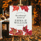 Sätt tonen för din höstfirande med denna eleganta röda höstblad repetitionsmiddag välkomstskylt. Rika karmosinrött och bränt orange akvarellbladverk framhäver din personliga text och skapar en varm och inbjudande entré för dina gäster.