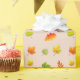 Höstblad på beige inslagspapper.