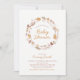 Denna höstblad baby shower inbjudan design har en modern höstkrans med blad, blommor och fåglar. Fler matchande föremål finns i min butik BaraBomDesign.