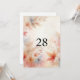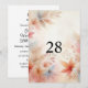 Minimalistisk kalligrafi text födelsedagsfest inbjudan med en vattenfärg bakgrund av höstblad i neutrala höstfärger.