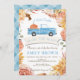 Min Höstblomma Blå Liten PUMPA Flicka BABY BARNKALAS Inbjudan är det perfekta sättet att inbjuda vänner och familj till en fest! Kortet har en blomster ram och en söt blå lastbil med pumpa. Du kommer att förälska dig i dessa baby shower inbjudningar.