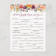 Våra höstblomma utfyllnads-kort med orange, burgunder, kräm och rosa blommor är en rolig aktivitet att ha på ett bröllopsreception eller möhippa. Du kan ändra rubrikens formulering om du vill genom att använda Zazzles verktyg " Anpassa denna mall ". Se till att kolla in vårt stora urval av koordinerade föremål genom att bläddra i samlingen Höstblomma Bröllop!