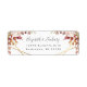 Dessa eleganta moderna bröllopsreturadressetiketter har en gyllene geometrisk ram dekorerad med akvarellblommor i höstskuggor på vit bakgrund. Den anpassningsbara texten kombinerar kolgrå nyckfull handskrift och kopparplåtstypsnitt.
