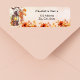 En roséguld, rosafärgad gradientbakgrund. Dekorerad med en vintage-lykta och orange blommor. Personifiera och lägg till ditt namn och adress. Svarta bokstäver.