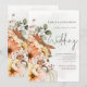 Höstens blomsterpumpa Script QR-kod Bröllop. Lägg till din QR-kod på din bröllopswebbplats på baksidan gör detta till ett bekvämt alternativ för dina gäster att svara och se alla detaljer utan att behöva separata svarskort och informationskort. En uppsättning handskriven text för bröllop och resten av texten kan du enkelt anpassa. Höstfärgade blommor och pumpa rinner ner på vänster sida och tvärs över botten och finns också på baksidan, med en pastellfärgad vattenfärgseffekt i bakgrunden.