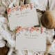 Uppmuntra söta känslor med detta hösttema baby shower råd och önskningar kort från Redwood & Vine Design Co. Med eleganta höstblommor och terrakotta skrift, är det det perfekta sättet för gästerna att lämna meddelanden om uppmuntran eller kärlek. En genomtänkt tillägg till alla mysiga, rustika eller pumpkin spice baby shower.