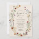 Höstblommig bröllopsdusch-inbjudan. Denna stilrena och eleganta bröllopsdusch-inbjudan har vackra, handmålade akvarellvilda blommor arrangerade som en vacker krans, perfekt för vår-, sommar- eller höstbröllop. Hitta matchande föremål i Boho Wildflower Wedding Collection.