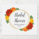 Höstens röda, orange och gyllene blommor som gränsar till gyllene cirkelram med eukalyptus och botanisk grönska för en höstfest