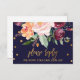 Detta höstblommiga menyval RSVP-kort är perfekt för en höstbröllop. Designen har en fantastisk bukett av rosafärgade, orange peach och marsalaburgunderfärgade blommor med falsk guldfolietypografi och konfetti. Detta bröllopssvarskort frågar bekvämt gästerna vilken måltid de vill ha på er mottagning.