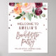 Denna höstens blomsterguldröda ljusa möhippefirande välkomstaffisch är perfekt för en höftbröllopsfest. Designen visar en fantastisk bukett av rosa, orange persika och marsalaburgunderfärgade blommor med falsk guldröd folietypografi och konfetti. Anpassa affischen med den blivande brudens namn och datum och plats för festen.
