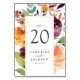 Detta hösttematiska kort för bordsnummer har vackra blommor och en modern, sofistikerad utformning. Vattenfärgblommorna omfattar ro i plommonskuggor, aprikoser och persikor. Fall foliage dekorerar även kortet bord. Kortets framsida och baksida är identiska för att göra det lättare för gästerna att hitta sin bord. Utrymme grund på kortet rymmer en kortinnehavare utan att texten döljs.