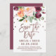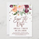 I höstas blommigt ro guld, spara datumkortet är perfekt för ett sommar- eller höstbröllop. Utformningen har en fantastisk bukett av blommor, persikor av orange och marsala burgundy-blommor med faux guld-folie av typografi och konetti av ro. Obs! Den här utformningen har inte äkta folie av ro guld. Det är en grafik av hög kvalitet som framställs som folie av ro guld.