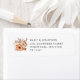 Hösten Blommigtar Newlyweds Returadress Bröllop. En vacker bukett av blommigtar och löv i Autumnal färg av brun och grädde finns till den lämnat och till namn och adress till högerna. Texten kan vara lätt att personlig.