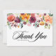 Skicka tack till gäster och kunder med det här anpassadet tack vare ditt kort. Den har vattenfärgsgarland av orange, burgundi, vit och rosa blommor med gröna accenter. Anpassa den här fallande blommigten tack genom att lägga till din egen händelseinformation. Det här vattenfärgkortet är perfekt för fallbröllop, möhippor, babyduschar och andra evenemang. falla bröllop,