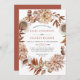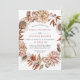 Höstblommor och löv är inbjudningar till andningsbröllop. En vacker vit blommigt som har en krans med blommor från dalia och ro och löv i fallande jordnära färg. Baksidan är av terracotta clay färg.