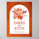 Höstblommor och lövbrända botaniska kort av orange och gåvor från bröllop poster. Den här vackra bröllop-konstruktionen har ett ram på brinnande nedfläckad i orange. I ram finns er text och en bukett med blommor och löv på höst färger.
