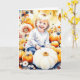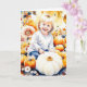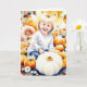 Söt Fall vattenfärgen bild på en liten flicka omgiven av pumpor och blommor Höstbrickor.