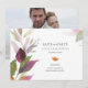 Meddela om din speciella dag med detta "spara datum"-kort med en enkel och elegant botanisk grönskrand av akvarellblad i grönt, plommonlila, vinrött och orange – perfekt för en höstbröllop med lila. Denna "spara datum"-design inramar er bröllopsinformation med stilren sans serif- och script-typografi, och baksidan visar ert förlovningsfoto. Ett vackert val för höstens trädgårds-, rustika eller utomhusbröllop i september, oktober och november. Fyll ut er bröllopspaket med koordinerade produkter och enkel utskrift av bröllopsinbjudan. Se fler designs på VG Invites på Zazzle: www.zazzle.com/vginvites.