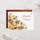 Om du planerar en informell höstbröllop på en utomhusrestplats eller lada och vill ha en avslappnad och ledig känsla på din speciella dag, kan denna moderna bröllopsinbjudan vara precis vad du behöver för att knyta ihop temat. Med en varm färgpalett i mörkt bränt orange, guld, gult, grönt, brunt och vitt är den garanterat en succé. Designen visar en blandad samling av illustrerade höstlöv, frökapslar och bär. Baksidan har ett mörkt kopparbrunt linne-mönster med konturer av designen som finns på framsidan. Denna mycket prisvärda bröllopsinbjudan har mycket charm utan en stor prislapp. Den skulle vara perfekt för ett modernt höst- eller autumn-tema.