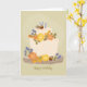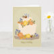 Kortet för födelsedagskalas på hösten med gröntens bakgrund. Grattis på födelsedagen i ett handskrivet teckensnitt.