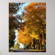 "Landsbygdens färger på hösten"-affisch är en fridfull bild av ljust lövverk på de höga lönnarna längs en landsväg på en vacker solig dag.