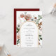 Elegant ördig botanisk blommigt från hösten, bröllopsinbjudan. Arch ram med gyllene accent och samordnande av den burgundi marsala röda färg. Inbjudan innehåller chicens typografi och stil-blandning av kalligrafi och fetstil.