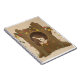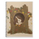 En söt illustration av en beagel i ett ihåligt träd täckt i färgstarka löv