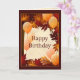En bild av Höst löv med lysande ballonger i orange på ett födelsedagskort. Kortet har en anpassade VERK- och textmall för din anpassning. Originalteckningar: Copyright Charmaine Paulson