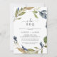 I höst bjuder jag på BBBQ-förlovningsfesten perfekt för en fallande förlovningsfest, par dusch, repetitionsmiddag, efter party eller bröllop. Den moderna, geologiska designen har marinblått, sage grönt och guld löv med sprit av mörk blått blommor.