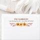 En söt guld daisy och brons löv formger grund i den här returadressetiketten. Anpassningsbarna står i två linjer ovanför bilden och allt placeras på en skarp vit bakgrund.