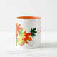 Keramiskt kaffe mugg som visas med en höst löv söt höst.Mugg visas i vitt med en orange insida färg. Anpassa det här objektet eller köp som det är.
