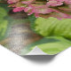 Hösten Hydrangea Bloom med Golden Hosta Löv Fototryck