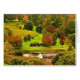 Det här bra konsementkortet har en underbar höstdag i säsong. Träd är briljant färgad med fallande färg av rött, orange, gult, guld, grönt och brunt. Två bänkar tittar ut på en söt damm med vatten reflektioner. Ta en promenad genom denna färglösa park i backe i Ithaca i Finger-Sjöar-regionen i uppstaten NY.