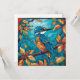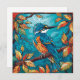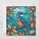 Ett platta kort med en kungsfiskare under hösten i stil av nedfläckad glas.