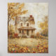 Gå in i en hösts charm på landsbygden med denna fängslande oljemålning. Den här teckningen har ett kvitt, strålande hus omgivet av vibrant fall-löv och fångar på ett vackert sätt själva kärnan i en mysigt, säker land-miljö. De varma nyheterna rött, orange och guld löv skapar en häpnadsväckande kontrast mot den texturerade, vintage-inspirerade bakgrunden, som ger scenen liv med en gnutta nostalgi. Perfekt för att tillföra värme och karaktär till vardagsrummet, sovrummet eller hallen framkallar den här målningen en känsla av lugn och elegans. Det är ett idealiskt biet för alla som kärlekar höstens skönhet och land charm.