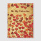 Många-hjärtan, klippt från fallna löv, på en rustik, gammal papper bakgrundsbild. Anpassadets text där det står "Be min Valentine" visas också.