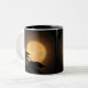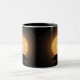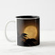 Det är höst, och en lysande gyllene gult fullt har stigit bakom de svarta silhuetter av löv som blåser i bron på det här dramatiska bran konturfotografiet mugg. Bakgrunden är belyst i tonerna orange, guld och brun för att skapa en abstrakt mönster i ett asiatiskt motiv. Konstruktionen upprepas på högerna och på lämnat sidor.