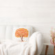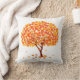 Dekorativ kudde med en bild av det automatiska mapelet träd och orange löv på marken.