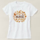 Den här snyggten T-shirt har en höstinspirerad utformning med ord "NURSE" inuti en pumpformad kontur. Omgiven av höst löv, grenar och blommigt inslag i varma örhänta toner kombineras med säsong charm på ett vackert sätt med en hjärtlig hyllning till sjuksköterskor. Perfekt för avslappnadens bära, gåvor eller sjuksköterskeuppskattningshändelser, lyfter fram både professionalism och säsong.