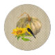 Unik och rustik höstskördedesign har vattenfärgstryck som illustrerar solros, gult fink och pumpor på sand och vit polka punktbakgrund.