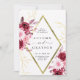 Fira en romantisk höst bröllop med den här elegantens inbjudan till blommigt som innehåller en guld-geometrisk diamant ram, vattenfärgad burgunddyna dahlias, peonier och rustisk falllöv. Perfekt för utomhusbruk, bohträdgård eller landsbyggsbröllop med mysigt vintage.