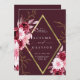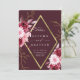 Fira en romantisk höst bröllop med den här elegantens inbjudan till blommigt som innehåller en guld-geometrisk diamant ram, vattenfärgad burgunddyna dahlias, peonier och rustisk falllöv. Perfekt för utomhusbruk, bohträdgård eller landsbyggsbröllop med mysigt vintage.