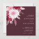 Fira en romantisk höst bröllop med den här elegantens inbjudan till blommigt som innehåller en guld-geometrisk diamant ram, vattenfärgad burgunddyna dahlias, peonier och rustisk falllöv. Perfekt för utomhusbruk, bohträdgård eller landsbyggsbröllop med mysigt vintage.