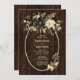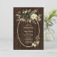 Vattenfärgad blommigt inslag som behandlats med sepiatonering, som satts över en faux-träbakgrund, avslutat med framkallad elfenbensfärgning...framhäva namn från bruden och brudgummen, med alla andra händelsedetaljer som presenteras i mindre, modernt typsnitt. Resultatet är en perfekt för designmatris för bröllop i höst! Para med matchande produkter för en komplett bröllop-svit.
