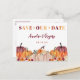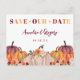 Hösten Spara vårt vykort för datummeddelande med fallande blommigtar och pumpor i rostbrun, tangerin orange, djup merlot, burgundy och vinterkrämtstoner.