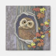 Älskare-konstruktionen är höst färger och ett ungt uggla ligger i ett ihåligt träd.