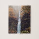 En mistvänlig vacker morgon i oktober 2016 vid de stora Multnomah-festivalen. Färgfulla höst löv- och lush-gröntar, i ett drömfilter. Columbia River Gorge, Oregon.