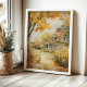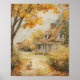 Den här målningen fångas en serenhöstdag på ett kavaint land-hem som är inkapslat bland vibranta fall-barr. De varma tonerna från guld, orange och gult skapar en mysigt och inbjudande atmosfär, där löven försiktigt faller runt scenen. Ett anka går lugnt längs en väg som lindar och tillför ett charmerande liv till den fredliga miljön. Rustikbostaden, med sitt avvanda trä och åkerträ i tak, omges av lush autumnal träd och buskar, vilket ger en perfekt fristad i naturens hjärta. Denna teckning framkallar en känsla av nostalgi och lugn, idealisk för dem som uppskattar skönheten hos land som lever i fallet.